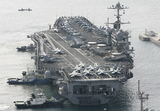 中新網(wǎng)3月11日電 據(jù)韓聯(lián)社報(bào)道,將參加韓美“關(guān)鍵決斷”聯(lián)合軍演的美國(guó)第3艦隊(duì)核動(dòng)力航母“約翰·斯坦尼斯”號(hào)(9.6萬(wàn)噸),11日上午抵達(dá)了釜山海軍作戰(zhàn)司令部基地。