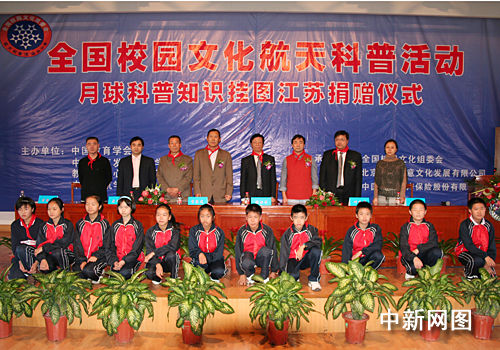 10月底,“嫦娥一號”探月衛(wèi)星將發(fā)射升空。為了迎接“嫦娥一號”的發(fā)射,10月15日,在江蘇省昆山市,中國人民財產(chǎn)保險股份有限公司向江蘇省中小學生捐贈了月球科普掛圖2000套。這套掛圖是目前國內(nèi)首次以生動、活潑的卡通形象“航天娃娃”向中小學生介紹月球地貌、月球資源、月球開發(fā)、月球基地建設(shè)等月球科普知識。據(jù)了解,這次捐贈的主要目的是把太空和月球知識送到中小學生中,以激發(fā)他們對航天知識的興趣,提高他們的科學素養(yǎng),培養(yǎng)開拓創(chuàng)新和刻苦鉆研的科學精神。劉明明 攝