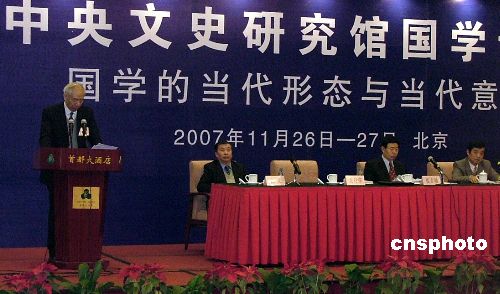 經中國國務院批準,中央文史研究館國學論壇二十六日在北京舉行。論壇主題是:國學的當代形態(tài)和當代意義。共有全國文史研究館館員以及中國社會科學院、北京大學、中國人民大學國學專家,香港、澳門、臺灣地區(qū)專家學者五十人出席。中新社發(fā) 徐長安 攝
