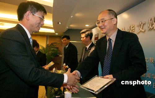 十一月三十日,“第三期海外華文媒體高級(jí)研修班”在北京結(jié)業(yè),國(guó)務(wù)院僑辦副主任趙陽(yáng)(右一)等出席結(jié)業(yè)式并為學(xué)員頒發(fā)結(jié)業(yè)證書(shū)。中新社發(fā) 張勤 攝
