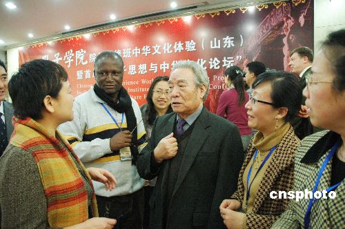 12月16日至18日,由中國(guó)國(guó)家漢辦主辦的全球孔子學(xué)院院長(zhǎng)研修班中華文化體驗(yàn)暨首屆“孔子思想與中華文化論壇”在山東大學(xué)舉行;顒(dòng)期間,來自18個(gè)國(guó)家34個(gè)孔子學(xué)院的44名外方院長(zhǎng)赴孔子故里——山東曲阜,參觀考察了孔府、孔廟和孔子研究院,體驗(yàn)中華文化,并出席首屆“孔子思想與中華文化論壇”,聆聽山東大學(xué)儒學(xué)研究中心著名教授丁冠之和傅有德教授主講的《孔子,我們共同的老師》、《論言說:中西差異及其根源》的演講。背景資料:孔子學(xué)院是中外合作建立的非營(yíng)利性教育機(jī)構(gòu),其宗旨和使命是增進(jìn)世界人民對(duì)中國(guó)語(yǔ)言和文化的了解,發(fā)展中國(guó)與外國(guó)的友好關(guān)系,促進(jìn)世界多元文化發(fā)展,并以東方圣人孔子的名字命名。從2004年開始,中國(guó)已在64個(gè)國(guó)家和地區(qū)建立210所孔子學(xué)院(包括孔子課堂),其中125所已開班授課。此外,還有61個(gè)國(guó)家的200多個(gè)機(jī)構(gòu)提出開辦申請(qǐng)。中新社發(fā) 金云 攝