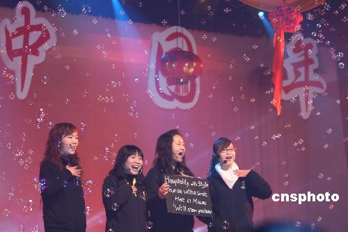 12月26日晚,由澳門大學等8所高校30名學生組成的訪問團來到江蘇淮陰師范學院,與該校師生舉行一場“好運中國年”交流演出。中新社發(fā) 蘇杭 攝