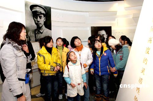 浙江紹興的中學(xué)生們在周恩來紀(jì)念館參觀。