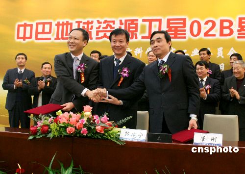 中國(guó)和巴西合作研制的中巴地球資源衛(wèi)星02B星,1月24日在北京正式交付給使用部門。中國(guó)航天科技集團(tuán)空間技術(shù)研究院、中國(guó)發(fā)射測(cè)控系統(tǒng)部、中國(guó)資源衛(wèi)星應(yīng)用中心三方簽署了02B星在軌交付證書。 中新社發(fā) 周兆軍 攝