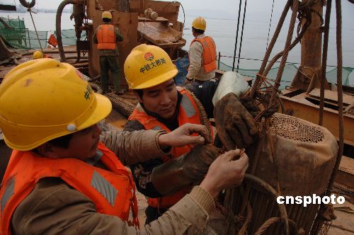 2月10日,福(州)廈(門)高速鐵路疑難項目之一----福州烏龍江特大橋工程獲得突破性進(jìn)展。工程采用“水中錨碇系統(tǒng)輔助的板凳結(jié)構(gòu)平臺”施工方法,轉(zhuǎn)入水面承臺施工,解決了水下施工難題。該橋全長868.178米,處于烏龍江河床最窄處,水深浪急雙向潮差達(dá)5米左右,地質(zhì)為傾斜光板巖,是福建省橋梁建設(shè)史上技術(shù)難度最高的項目。中新社發(fā) 鄭祚聲 攝