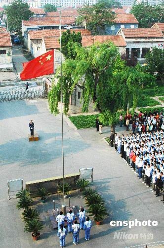 5月19日,山東鄒平縣實(shí)驗(yàn)中學(xué)降半旗為四川地震中的遇難者致哀。國務(wù)院公告從19日到21日為全國哀悼日,各地降半旗致哀。中新社發(fā) 董乃德 攝