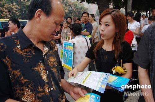 6月7日上午,中國(guó)高考開始,在福州各高考考場(chǎng)外,不少推銷員不厭其煩地向等候考生的家長(zhǎng)們推介出國(guó)留學(xué)、外語(yǔ)培訓(xùn)、暑期游學(xué)、暑期補(bǔ)習(xí)輔導(dǎo)等業(yè)務(wù)。隨著高考的舉行,暑期即將到來,“暑期經(jīng)濟(jì)”也隨之在社會(huì)生活中“翩翩起舞”。中新社發(fā) 鄭祚聲 攝
