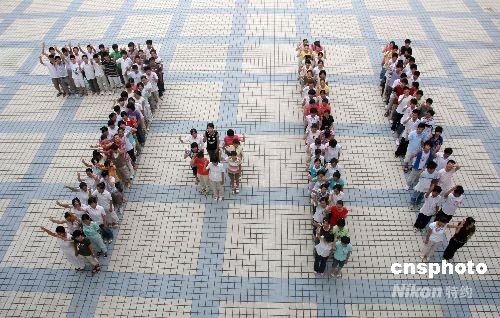 2008年7月11日是“世界人口日”,安徽省含山縣含山中學(xué)200余名中學(xué)生在老師的組織下以行為藝術(shù)的形式表演“擁擠的地球”,并組成“7·11”圖案,以此呼吁人們重視人口問題,并關(guān)注人口與資源、環(huán)境等關(guān)系,紀(jì)念第19個(gè)“世界人口日”。中新社發(fā) 程千俊 攝