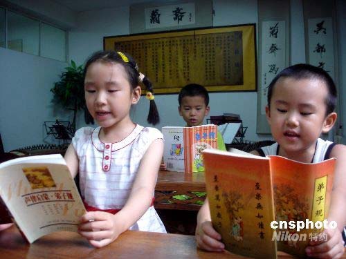 7月14日,孩子們在蘇州一家私塾學(xué)習(xí)古文。暑假期間,蘇州的一些私塾開設(shè)暑期班,教孩子們學(xué)習(xí)中國古典文學(xué),以培養(yǎng)孩子的文化底蘊、陶冶情操。中新社發(fā) 王建康 攝
