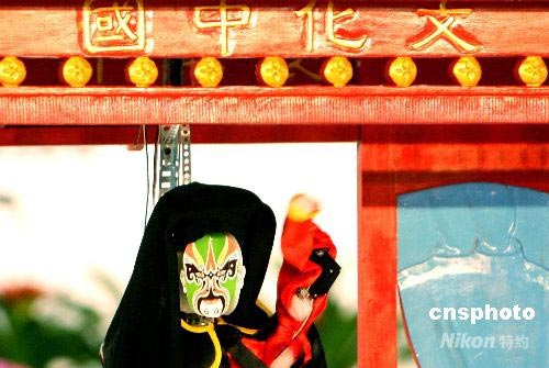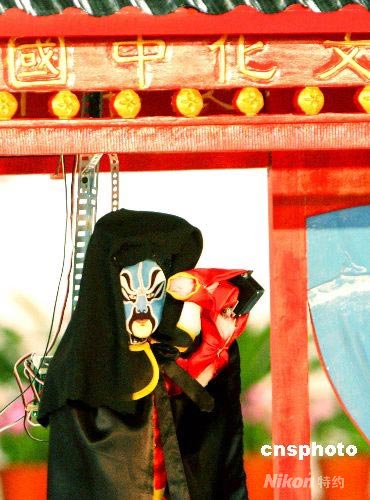 7月17日,蘇州碧波實(shí)驗(yàn)小學(xué)參賽機(jī)器人表演“川劇變臉”。當(dāng)日,在蘇州國際博覽中心舉辦的“RoboCup 2008機(jī)器人世界杯賽”青少年組機(jī)器人跳舞比賽場(chǎng)上,來自蘇州碧波實(shí)驗(yàn)小學(xué)參賽的“川劇變臉機(jī)器人”引人入勝。一個(gè)身披黑袍的機(jī)器人隨著川味十足的《唱臉譜》音樂,登臺(tái)表演2分鐘共變換了6張“川劇臉譜”。中新社發(fā) 蘇秀 攝