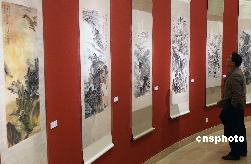 紀(jì)念國畫大師陸儼少誕辰100周年藝術(shù)展在北京開幕。10月31日,為紀(jì)念中國已故國畫大師陸儼少先生誕辰100周年,緬懷這位藝術(shù)大師,展示大師的藝術(shù)成就,由浙江省人民政府、中國文學(xué)藝術(shù)界聯(lián)合會主辦的“陸儼少先生誕辰100周年藝術(shù)展暨《陸儼少全集》首發(fā)式”,歷經(jīng)上海、南京巡回展覽后,在北京中國美術(shù)館開幕。中新社發(fā) 錢興強 攝