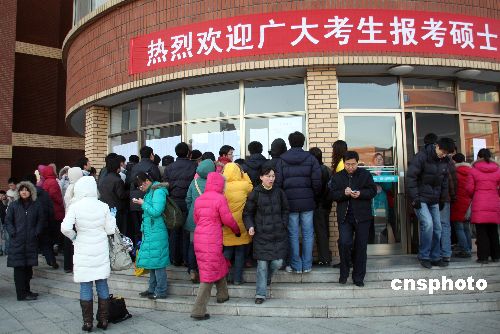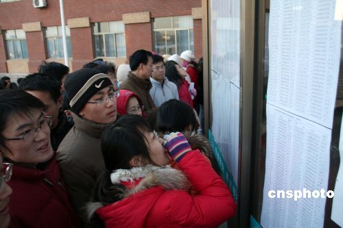 1月9日,山東濱州眾多參加碩士研究生考試的學子蜂擁到山東濱州學院考點,提前確認考場。據(jù)悉,山東濱州共有3800余名考生報名參加。1月10日,2009年全國碩士研究生入學統(tǒng)一考試開考,共有124.6萬名考生在全國各地應試。中新社發(fā) 郭志華 攝