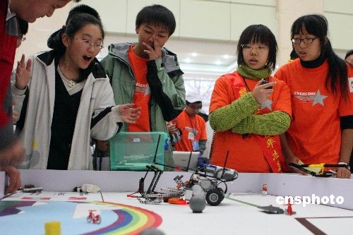 3月6日,第24屆云南省青少年科技創(chuàng)新大賽機(jī)器人競(jìng)賽在云南省科學(xué)技術(shù)館舉辦。來自云南省內(nèi)的102支隊(duì)伍參加了“機(jī)器人足球比賽”、“FLL機(jī)器人工程挑戰(zhàn)賽”等多個(gè)項(xiàng)目的比賽。圖為參賽隊(duì)員進(jìn)行“FLL機(jī)器人工程挑戰(zhàn)賽”的比賽。中新社發(fā) 劉冉陽 攝