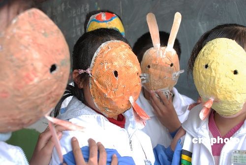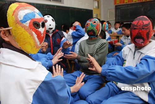 3月16日,山東鄒平縣實驗中學(xué)的學(xué)生用自制的面具表演校園生活自編劇。學(xué)生們用舊報紙在充氣氣球上經(jīng)過糊紙、描彩、勾畫、裁切等步驟自制個性面具,并進(jìn)行展示評比,以小組為單位,以學(xué)生身邊所見所聞為表演題材自編短劇在課堂上展演。據(jù)悉,該校成立機(jī)器人、繪畫、舞蹈、表演、攝影等各種創(chuàng)新活動小組,以培養(yǎng)學(xué)生動手能力和創(chuàng)新能力。中新社發(fā) 董乃德 攝