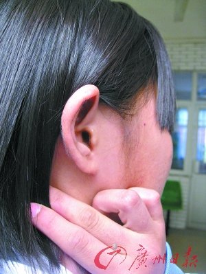 昨天下午,記者在廣州市中西醫(yī)結(jié)合醫(yī)院見到了小晴,她看上去精神有些恍惚,面部微腫,腹部有輕微皮外傷。醫(yī)生為她檢查了耳部后,診斷為“耳膜穿孔,嚴重程度中等”。