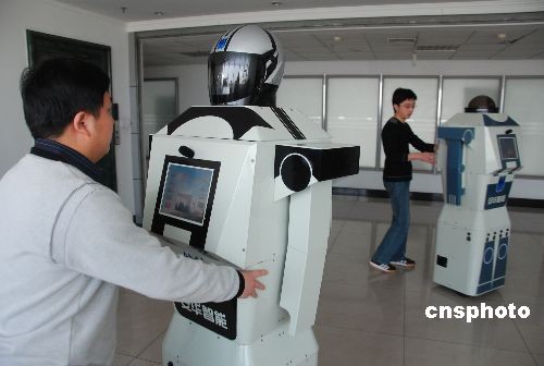 4月18日,濰坊(山東)安華智能公司工作人員展示“團團”“圓圓”智能機器人。由山東安華智能公司自主研發(fā)的一男一女兩款智能機器人身長分別為170、166厘米、體重各50公斤,男的名叫“團團”,女的名的“圓圓”。他們不但會跳舞,能自主靈活行走,并且具備與人交談、識別人臉和信息推介等諸多功能。據(jù)悉,“團團”“圓圓”將亮相第26屆濰坊風(fēng)箏會,并承擔(dān)迎賓任務(wù)。 中新社發(fā) 孫樹寶 攝