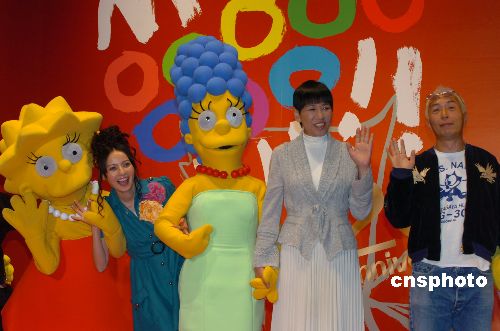 圖為美國動畫片《辛普森一家》日語版配音演員和田明子(右二)等出席開幕式。中新社發(fā) 滕劍峰 攝