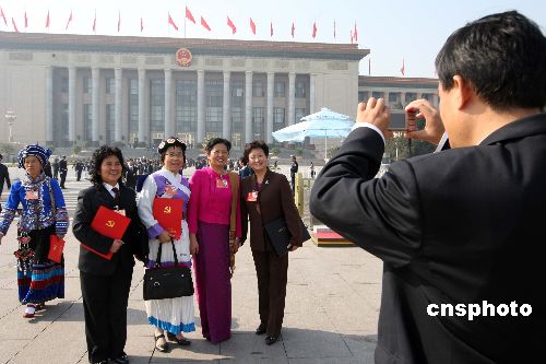 十月二十一日,中國共產(chǎn)黨第十七次全國代表大會(huì)在北京人民大會(huì)堂閉幕,代表們會(huì)后在人民大會(huì)堂前留影。中新社發(fā) 毛建軍 攝