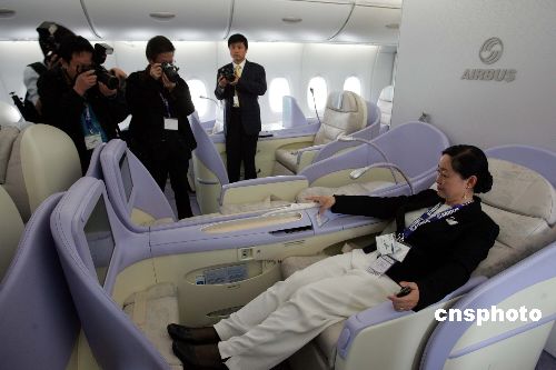 A380上海展示全新雙層飛機(jī)內(nèi)飾。