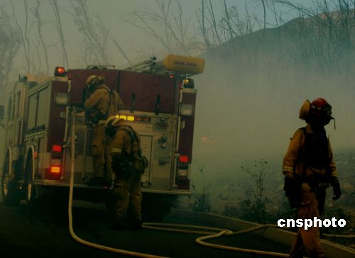 十月二十六日,美國加州大火第六天,消防員基本撲滅洛杉磯十四處山火,準(zhǔn)備轉(zhuǎn)戰(zhàn)依然燃燒的圣地牙哥和橙縣,那里災(zāi)情依然嚴(yán)峻。中新社發(fā) 賈國榮 攝