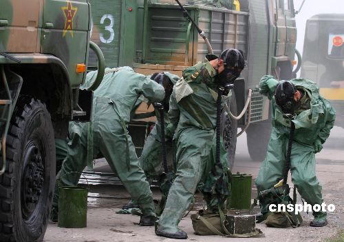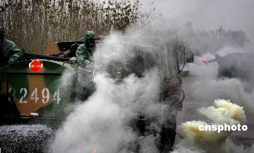 展開(kāi)防毒劑襲擊科目訓(xùn)練。
