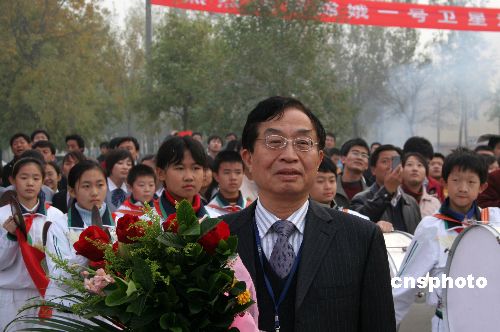 十一月七日下午,中國首顆月球探測衛(wèi)星“嫦娥一號”研制單位——中國空間技術研究院舉行盛大歡慶活動,慶!版隙鹨惶枴毙l(wèi)星成功進入工作軌道,歡迎該院“嫦娥一號”衛(wèi)星試驗隊凱旋。中新社發(fā) 孫自法 攝