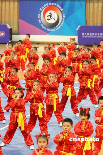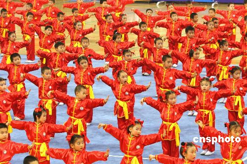 圖為在開(kāi)幕式上,由百余名兒童組成的表演隊(duì)為在場(chǎng)觀(guān)眾奉獻(xiàn)精彩的表演。