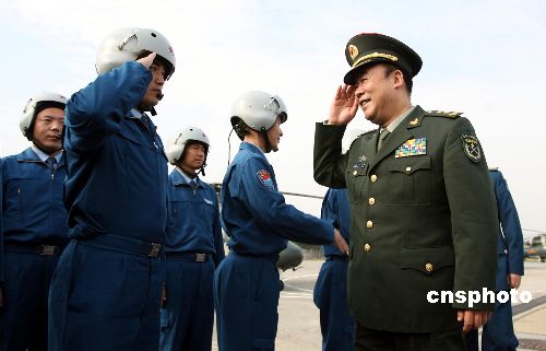 圖為輪換出港的直升機(jī)駛離空軍基地。