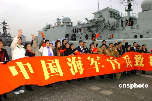 11月28日上午,中國(guó)海軍“深圳”號(hào)導(dǎo)彈驅(qū)逐艦抵達(dá)日本東京晴海碼頭,開(kāi)始對(duì)日本進(jìn)行正式友好訪問(wèn)。日方舉行了熱烈的歡迎儀式。歡迎儀式后,中日兩國(guó)軍樂(lè)隊(duì)開(kāi)始聯(lián)合演出。中新社發(fā) 滕劍峰 攝