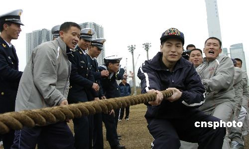 11月29日上午,正在日本進行友好訪問的中國海軍“深圳”號導彈驅(qū)逐艦上的官兵在此間與日本海上自衛(wèi)隊官兵進行了體育交流。雙方隊員分成兩支混合隊伍進行足球、拔河比賽。中新社發(fā) 朱沿華 攝