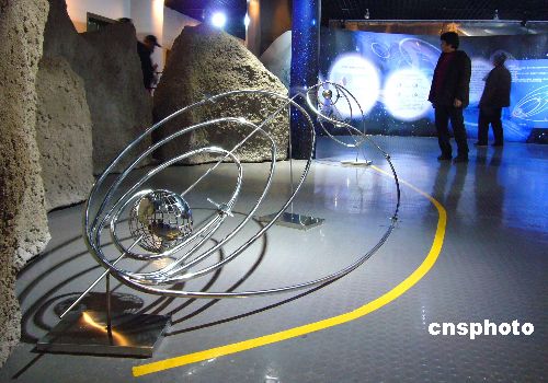 11月28日,全國(guó)首個(gè)“嫦娥探月專題展”在北京天文館拉開帷幕,“嫦娥一號(hào)”1:2的實(shí)物模型以及繞月軌道模型成為此次展覽亮點(diǎn)。中新社發(fā) 玉龍 攝