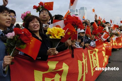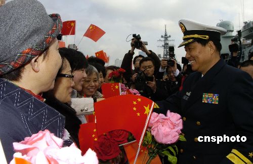 12月1日上午“深圳”號結(jié)束對日本的友好訪問返航歸國時,六百余名在日華人華僑留學(xué)生及駐日使館人員趕往碼頭送行。中新社發(fā) 朱沿華 攝