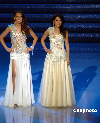 十二月一日,第五十七屆世界小姐總決賽晚會在三亞“美麗之冠”舉行,共有一百零六名來自世界各地的選手參加。圖右為香港小姐Ka Yi CHEUNG入選第十六位。中新社發(fā) 王辛莉 攝