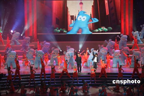 十二月十八日晚,備受海內(nèi)外矚目的中國二0一0年上海世博會吉祥物在上海大舞臺揭開神秘面紗。一個(gè)返璞歸真的、漢字“人”的藍(lán)色卡通造型——吉祥物“海寶”正式亮相。“海寶”吉祥物的誕生,是海峽兩岸設(shè)計(jì)師共同的智慧結(jié)晶。其最初使用漢字充當(dāng)吉祥物的創(chuàng)意始于臺灣知名設(shè)計(jì)師巫永堅(jiān),他的應(yīng)征作品漢字卡通形象“大寶”在全球兩萬六千多件應(yīng)征作品中脫穎而出,再經(jīng)過上海設(shè)計(jì)名家邵隆圖及其團(tuán)隊(duì)的整合、再設(shè)計(jì),“海寶”最終定型。中新社發(fā) 潘索菲 海牛 攝