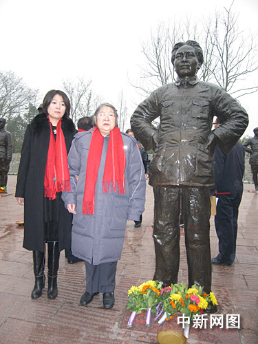 李敏攜女兒孔東梅在毛澤東塑像前與父親合影;蠢柘 攝