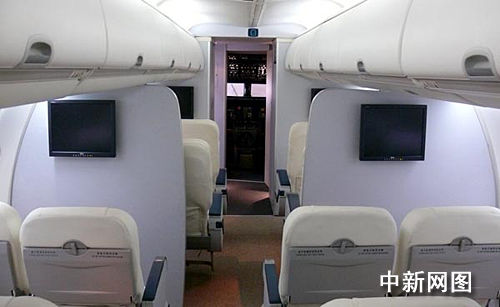 中國首架自主知識產(chǎn)權(quán)的噴氣支線客機ARJ21艙內(nèi)布局。
