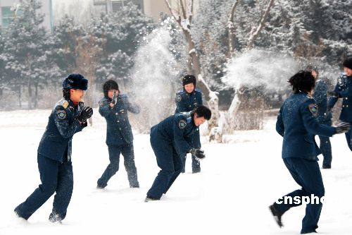 圖為大雪激起了姑娘們的童真,一場(chǎng)雪仗為校園帶來了勃勃生機(jī)。