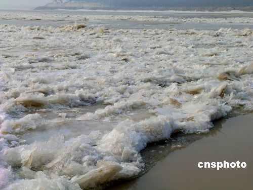 1月14日,受持續(xù)低溫天氣影響,山東黃河濟南段出現(xiàn)淌凌。據(jù)介紹,隨著氣溫逐漸下降,流凌密度將會進一步加大。中新社發(fā) 張慶民 攝