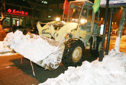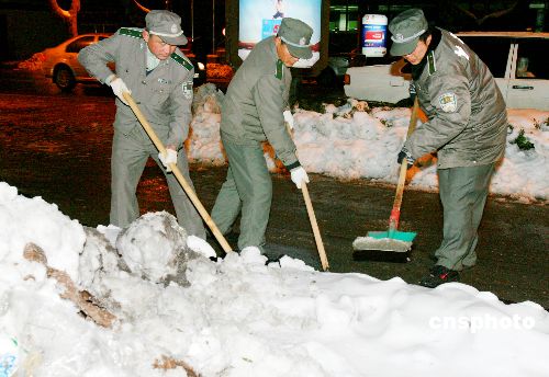 1月29日,蘇州團(tuán)市委組織團(tuán)干部和青年志愿者上街清除積雪。當(dāng)日,古城蘇州普降持續(xù)三天中到大雪和局部地區(qū)遭遇罕見(jiàn)暴雪后,給市區(qū)道路交通造成嚴(yán)重影響,許多常綠樹木不堪雪壓重負(fù)而折腰或斷枝。蘇州市有關(guān)部門啟動(dòng)應(yīng)急搶險(xiǎn)預(yù)案,開(kāi)展防寒防凍工作,并組織數(shù)千名黨政機(jī)關(guān)干部和駐軍官兵共同抗雪災(zāi),以保證交通道路暢通和街頭樹木受損。 據(jù)蘇州氣象臺(tái)當(dāng)天發(fā)布的氣象預(yù)報(bào)稱,該市雪止后的2月30日最低氣溫將下降至零下2攝氏度左右,道路有嚴(yán)重結(jié)冰。中新社發(fā) 蘇秀 攝