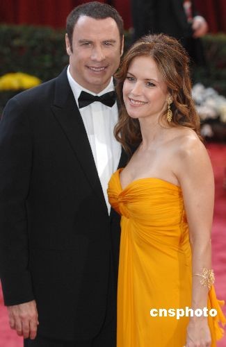 美國(guó)影星約翰·屈伏塔夫婦參加奧斯卡頒獎(jiǎng)禮