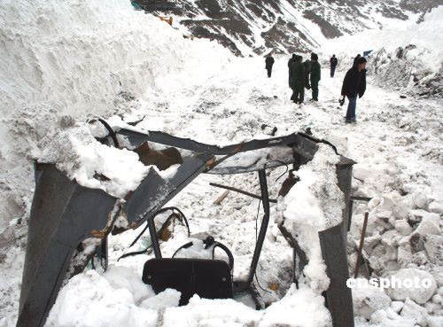 3月16日,新疆天山果子溝通往事故現(xiàn)場的山路再次發(fā)生雪崩,阻斷了救援人員進出的唯一通道,嚴重影響了救援工作的開展。到目前為止,初步核實位于新疆天山果子溝的西氣東輸二線工程一處隧道施工現(xiàn)場發(fā)生雪崩,有22人被困或掩埋,已有6人獲救,3人死亡,其余13人仍下落不明。中新社發(fā) 馬耀林 攝
