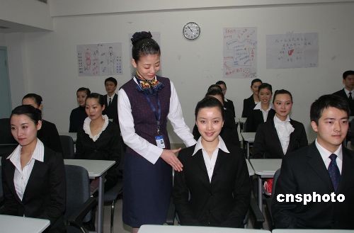 3月18日,國航從“奧運空乘”成都賽區(qū)選拔出的首批34名優(yōu)秀學(xué)員,集中在國航西南分公司成都乘務(wù)員培訓(xùn)中心開始接受近三個月的乘務(wù)員初始培訓(xùn),培訓(xùn)成績優(yōu)異者將投入國航奧運航線客艙服務(wù)。這批學(xué)員包括12名男學(xué)員、22名女學(xué)員,清一色為大專以上學(xué)歷,其中14人達到本科學(xué)歷,為乘務(wù)培訓(xùn)中心接收的學(xué)歷最高的一批乘務(wù)學(xué)員。中新社發(fā) 易世忠 攝