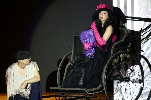 圖為模特在發(fā)布會上乘黃包車登臺表演。中新社發(fā) 盛佳鵬 攝