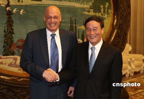 圖:王岐山與鮑爾森在北京舉行工作會(huì)談