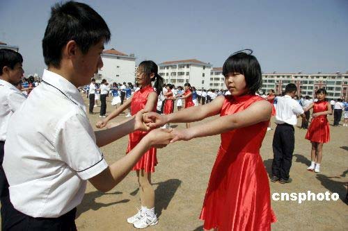 圖:山東威海舉辦迎奧運(yùn)校園集體舞大賽(3)