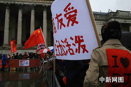 離北京奧運(yùn)火炬抵達(dá)倫敦市中心的特拉法加廣場(chǎng)還有兩個(gè)小時(shí),通過(guò)網(wǎng)站組織起來(lái)的中國(guó)留學(xué)生已經(jīng)聚集到廣場(chǎng),準(zhǔn)備歡迎火炬。李鵬 攝