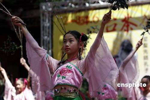 圖為臺南大學(xué)附屬小學(xué)的學(xué)童為茶禮揭開序幕。中新社發(fā) 杜洋 攝