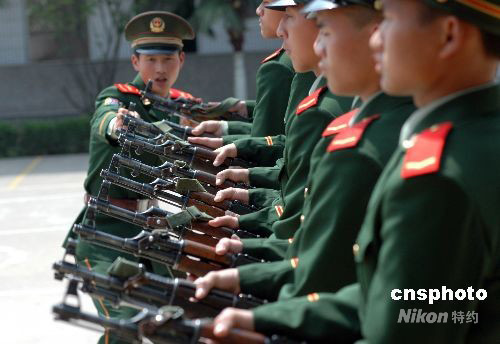 4月10日,武警南京支隊(duì)官兵在進(jìn)行訓(xùn)練。連日來(lái),南京武警官兵積極備戰(zhàn)奧運(yùn)安保工作,通過(guò)隊(duì)列及各種禮儀、處置突發(fā)事件等方面進(jìn)行嚴(yán)格正規(guī)的軍政素質(zhì)訓(xùn)練,從而不斷提升執(zhí)勤官兵形象,為維護(hù)一方穩(wěn)定做貢獻(xiàn)。中新社發(fā) 唐占軍 攝