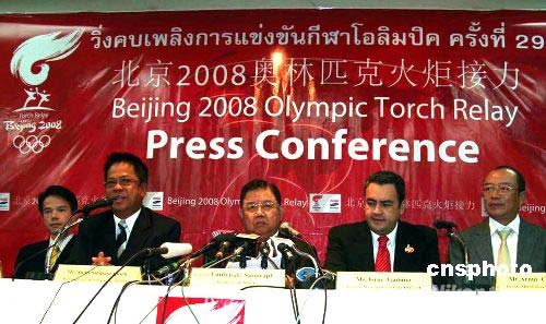 4月17日,泰國(guó)奧委會(huì)在國(guó)家體育館就奧運(yùn)火炬?zhèn)鬟f活動(dòng)舉行新聞發(fā)布會(huì)。泰國(guó)奧委會(huì)主席育塔薩先生(中)表示,曼谷為迎接北京奧運(yùn)會(huì)圣火已經(jīng)做好一切準(zhǔn)備。曼谷的火炬?zhèn)鬟f活動(dòng)將在當(dāng)?shù)貢r(shí)間19日下午三點(diǎn)開始。火炬將從曼谷唐人街——耀華叻路起跑,途經(jīng)富有泰國(guó)民族文化特色的地點(diǎn),如大王宮、王家田廣場(chǎng)、民主紀(jì)念碑、五世王紀(jì)念廣場(chǎng)等,全程約10公里。 作者: 顧時(shí)宏