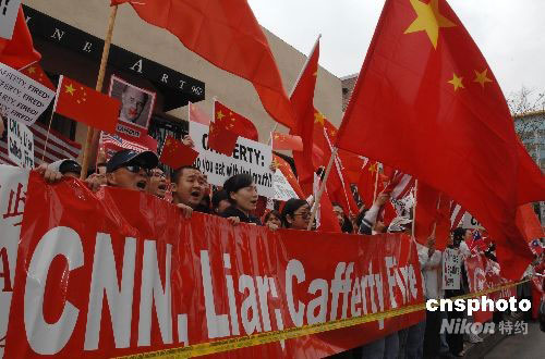 當(dāng)?shù)貢r(shí)間4月19日,洛杉磯爆發(fā)十幾年來(lái)最大規(guī)模的華人華僑抗議示威活動(dòng)。數(shù)千名華人華僑和留學(xué)生在CNN洛杉磯分部門前參加和平示威,要求CNN向公開鄭重道歉,并開除卡弗蒂。除了中國(guó)大陸籍華人華僑外,很多來(lái)自越、柬、寮和印尼等國(guó)的旅美華人華僑、香港和臺(tái)灣籍僑民和留學(xué)生也加入到抗議隊(duì)伍中。中新社發(fā) 張煒 攝